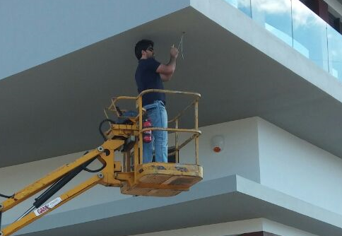 O cliente não dispunha de uma rede interligada. Foi necessário intervir na infra-estrutura instalada, cravando tomadas RJ45 e testando toda a instalação existente.