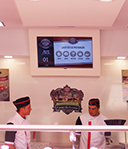 Usamos como base pequenos PC's (fixos nas traseiras dos ecrans planos instalados) para alojar o nosso software de senhas. Este programa não apoia a gestão de clientes nas lojas mas permite passar publicidade, as ultimas noticias ou promoções do dia. A gestão de todas as promoções nas diversas lojas é centralizada e gerida pelo cliente, que de forma fácil e intuitiva altera as imagens e campanhas em cada loja. O nosso software foi personalizado de acordo com as pretenções do cliente e consoante o tipo de loja, toda a experiencia gráfica pode ser alterada.